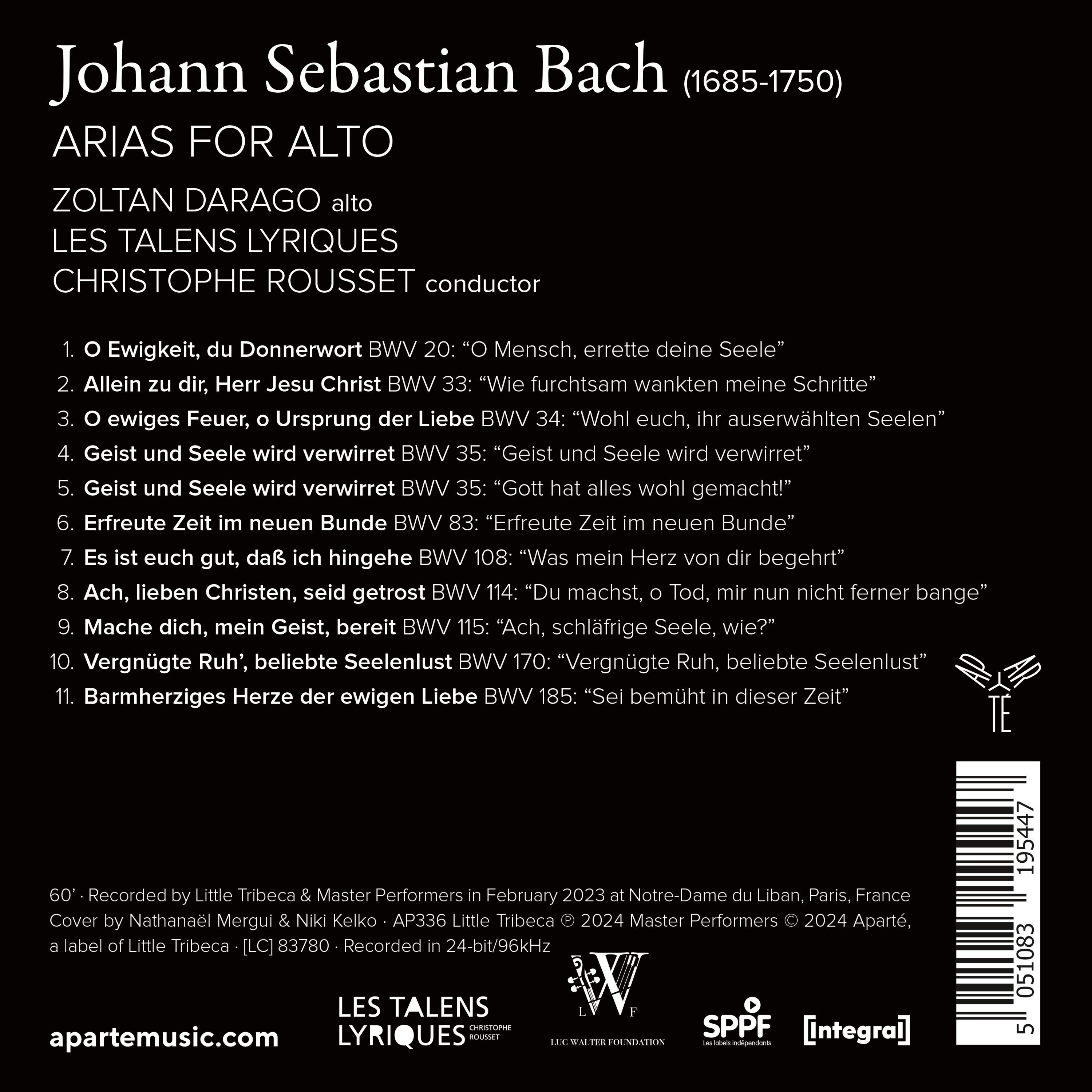 Christophe Rousset et le contreténor Zoltan Darago explorent ce répertoire dans un programme principalement issu des foisonnantes premières années leipzigeoises, qui font la part belle aux parties concertantes, donnant à entendre les sublimes dialogues entre violon, hautbois d’amour ou orgue et voix