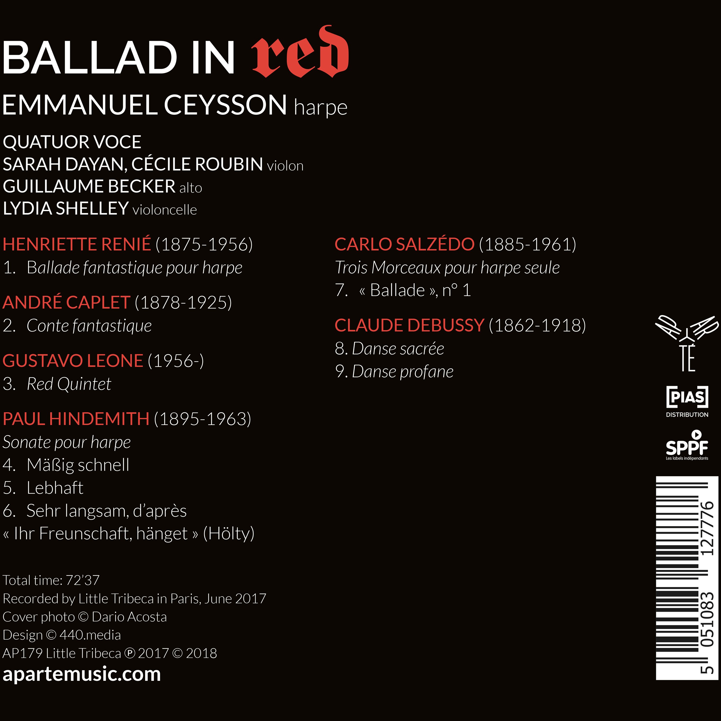 Puissante dans le grave, cristalline dans l’aigu, la harpe s’accorde avec les quatre instruments du quatuor en prolongeant et amplifiant leurs possibilités timbrales. Gustavo Leone tire magnifiquement parti de cette combinaison instrumentale originale dans son Red Quintet.