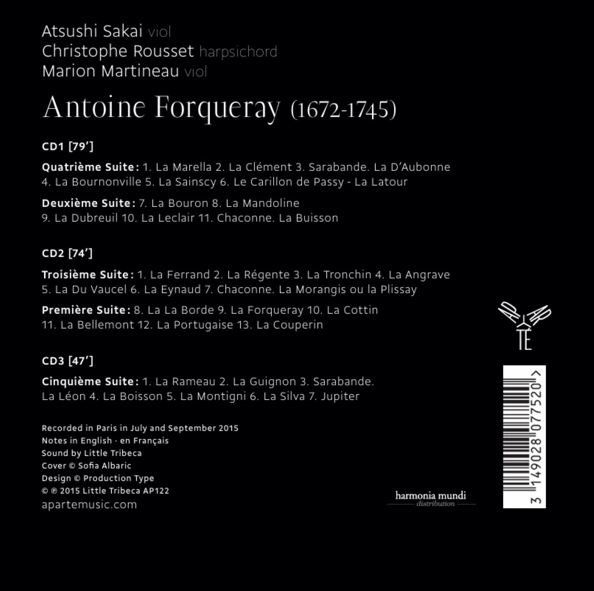 Chaque apparition d'Atsushi Sakai et Christophe Rousset laisse un souvenir inoubliable à ceux qui ont eu la chance de les entendre communier sur scène. Partenaires de longue date, ils sont réunis pour la première fois au disque autour d'un compositeur pour lequel ils vouent un véritable culte : le mystérieux Forqueray. Antoine Forqueray, né à Paris en 1672, est avec Marin Marais l'un des plus grands violistes de tous les temps. Sa vie sulfureuse a nourri de nombreuses légendes. Célèbre pour ses improvisations virtuoses, il ne publie aucune de ses quelques trois cents pièces et meurt en 1745 à Mantes. Mises à part quelques pièces manuscrites copiées dans des recueils de différents auteurs, les pièces de Forqueray ont été perdues. La publication des Pièces de viole, auxquelles est consacré le présent enregistrement, demeure ainsi le seul témoignage important de son ouvre.