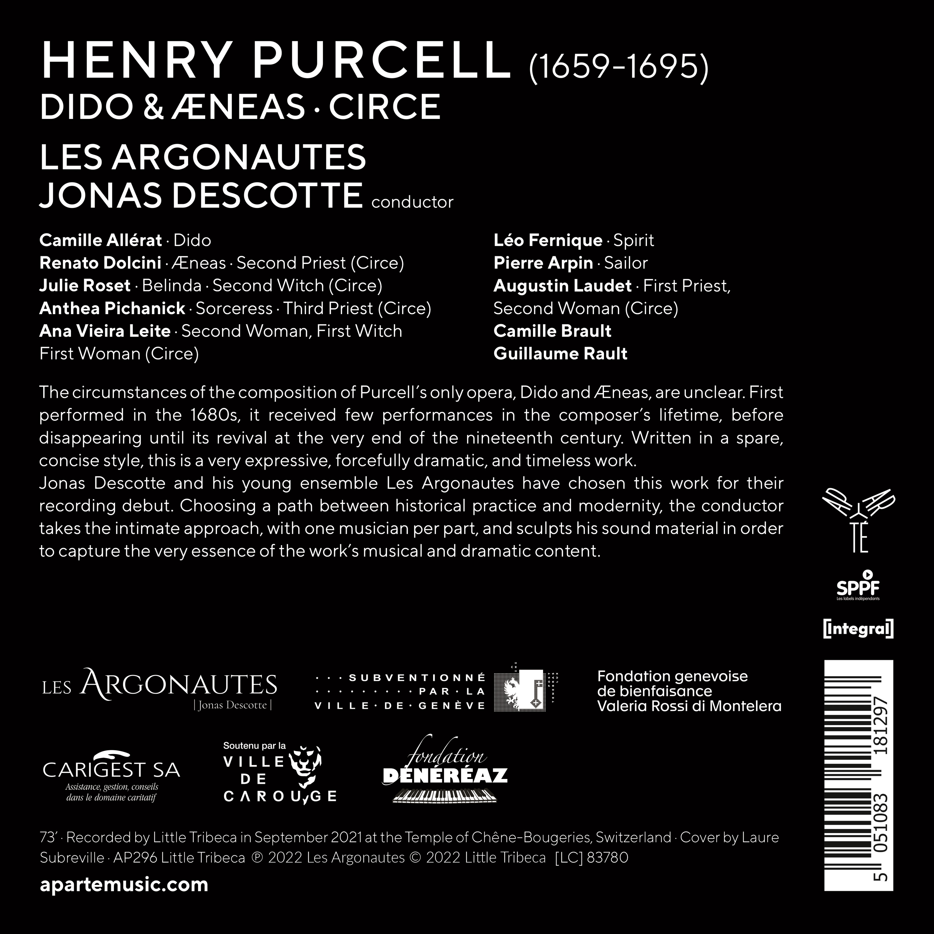 Unique opéra de Purcell, composé dans des conditions mystérieuses, Didon et Enée a disparu des scènes lyriques peu après les rares interprétations qu’on lui connaisse, pour n’y faire son retour qu’à la toute fin du XIXe siècle. Depuis, cette miniature conjuguant poésie, séduction mélodique et force dramatique dans les sommets de beauté qu’on lui connaît (l’air de Didon, les scènes des Sorcières) a connu une heureuse fortune.